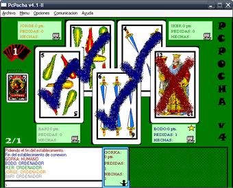 PcPocha es un juego de cartas, similar al Tute, en el que tendrás que adivinar la cantidad de bazas que te llevarás cada mano.